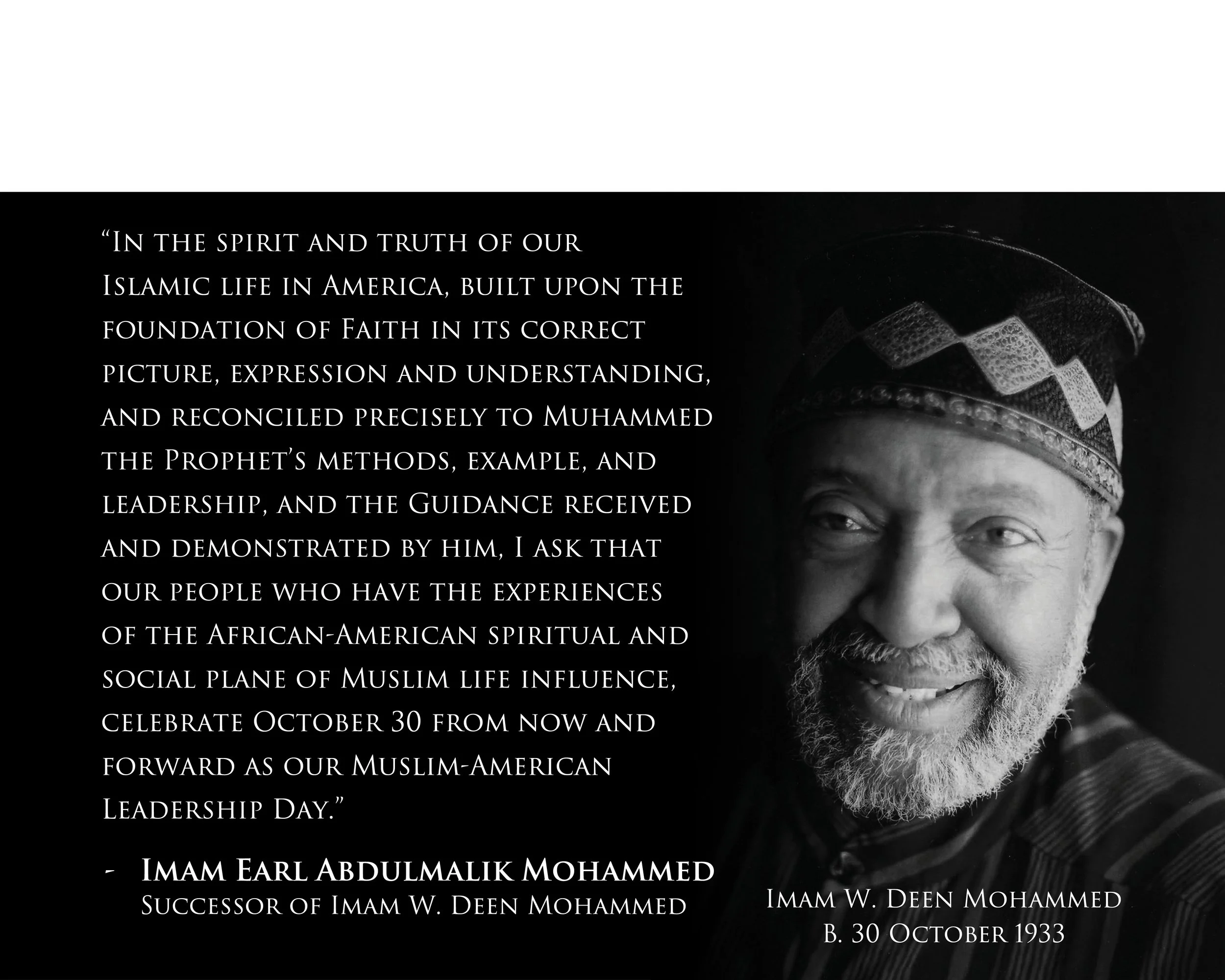 Established 30 October 2021 on what would have been Imam W. Deen Mohammed’s 88th birthday, Muslim-American Leadership Day is an annual commemoration of the late Muslim leader and reformer’s determined reach for community life establishments that serve the universal aspirations of humanity.